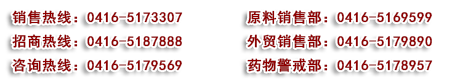 ●招商熱線:0416-5187888            ●藥物警戒部:0416-5178957            ●咨詢(xún)熱線:0416-5179569